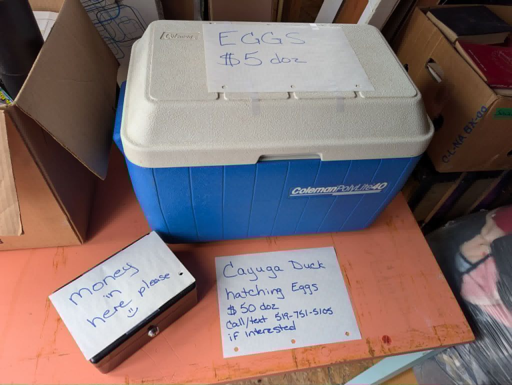 So far we have eggs… and a few free things, I’ll be adding more to the free box as I downsize and clean out the farm stand. I’ll also be adding homemade items as I get things cleaned up and better organized inside.